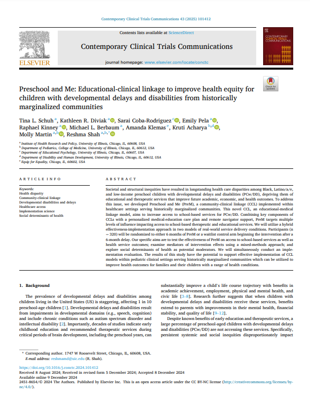 Preschool and Me: Educational-Clinical Linkage to Improve Health Equity for Children with Developmental Delays and Disabilities from Historically Marginalized Communities.